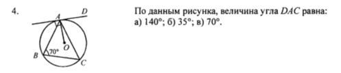 Объяснение: Дуга АС равна 70*2, т.к. угол АВС измеряется половиной этой дуги. Но угол между хордой АС и касательной тоже измеряется половиной этой дуги и равен 70 градусам.