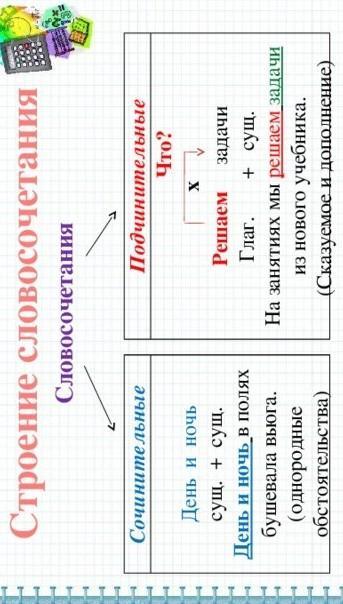 Словосочетание — это сочетание двух (или более) самостоятельных слов, связанных между собой подчинительной связью по смыслу и грамматически: читать книгу, теплый день.