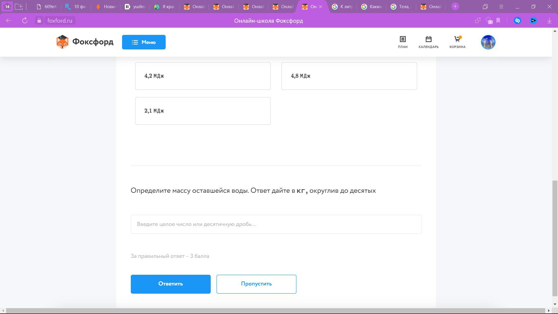Оставшаяся масса воды m= 20-1,17≈ 18,83 кг