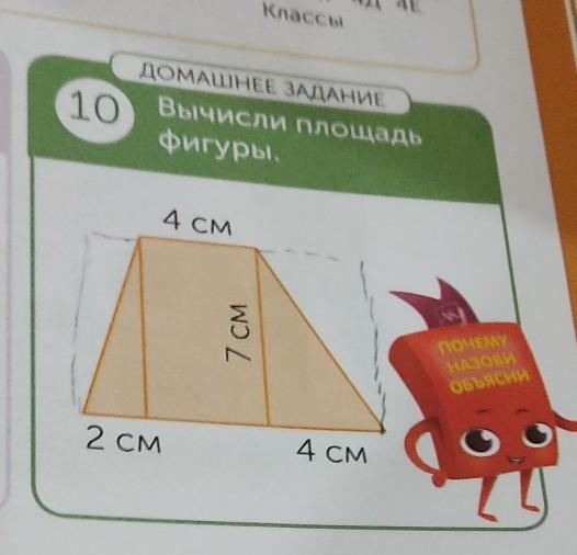 ДОМАШНЕЕ ЗАДАНИЕ 10 Вычисли площадь фигуры. 4 СМ 7 см ПОЧЕМУ НАБОРИ объясни 4 СМ 2 СМ помогите пожалуйста
