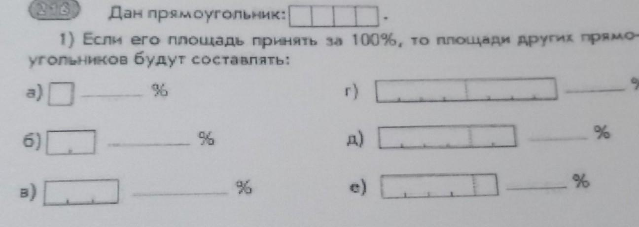 Дан прямоугольник: 1) Если его площадь принять за 100%, то площади других прямо- угольников будут составлять: