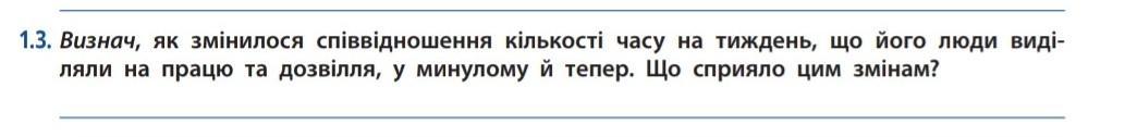 1.3. Визнач, як змінилося співвідношення кількості часу на тиждень, що його люди виді- ляли на працю та дозвілля, у минулому й тепер. Що сприяло цим змінам? Швидкоооо