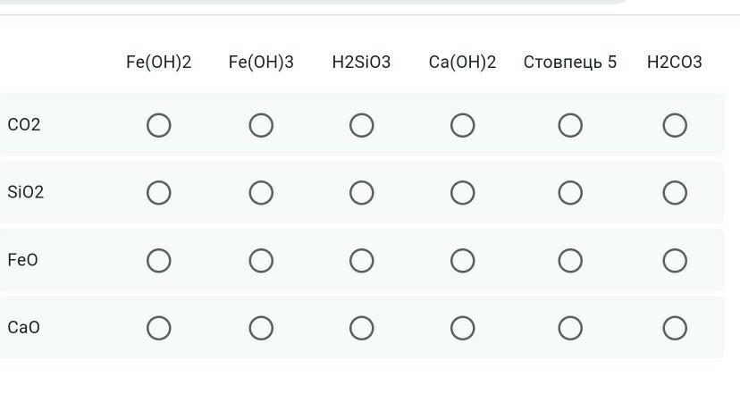 Встановити відповідність між формулами оксидів та кислот або основ, що їм відповідають: *