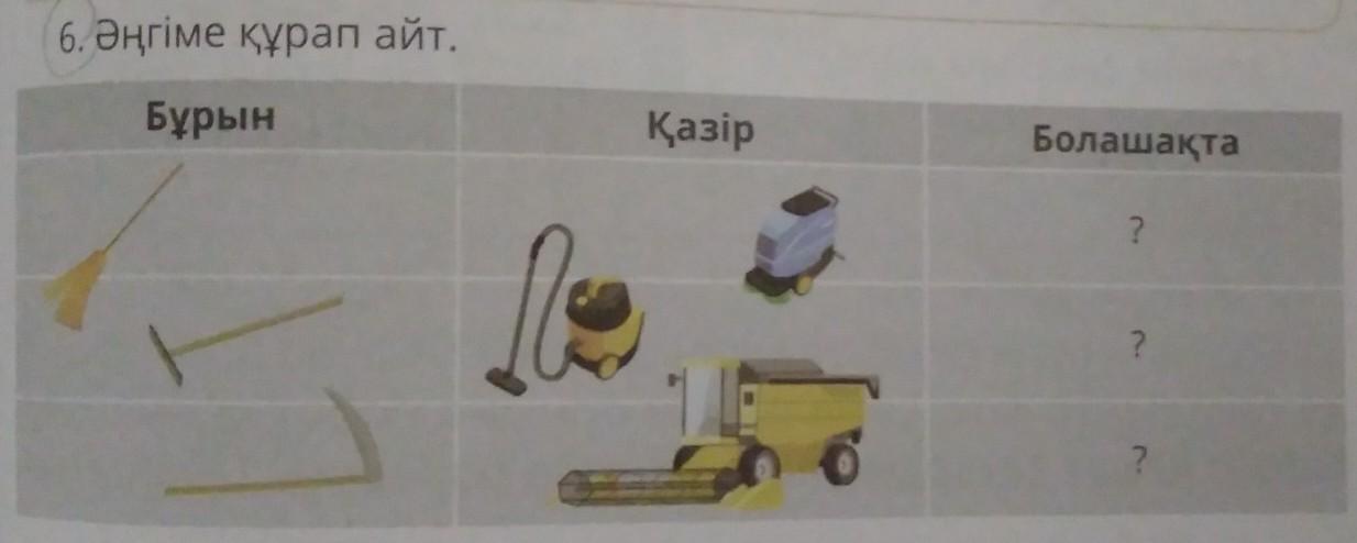 Сурет бойынша әңгіме құрай аламын. 6. Әңгіме құрап айт. Бұрын Қазір Болашақта.Пожалуйста напишите только в будущем на казахском