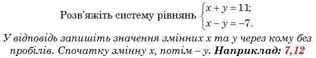 =2, у=9Объяснение: в системе есть у и -у. Они сокращаются. Потом остаються 2х и 4, делим 4 на 2 и потом в первой системе решаем как обычное уравнение, то есть у=11-2 тогда выходит что у=9 и это является решением системы.