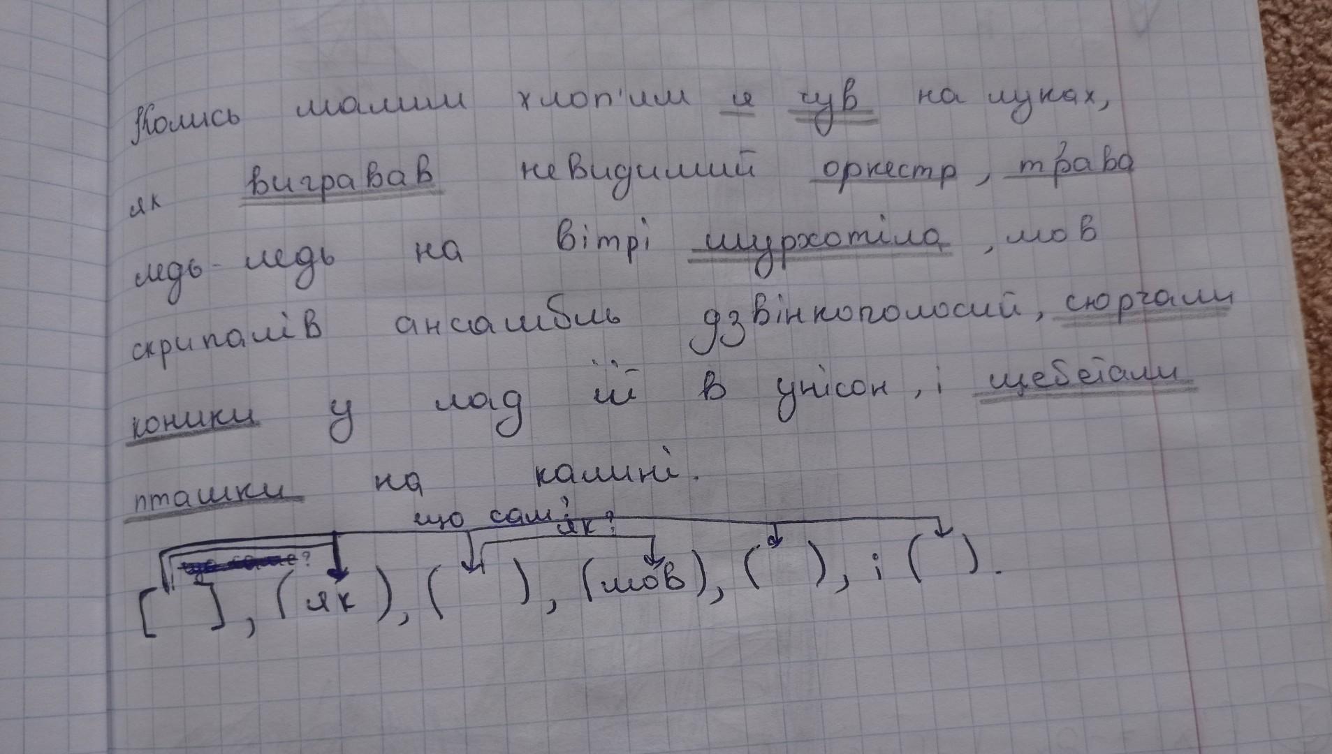 Колись малим хлоп’ям я чув на луках, як вигравав невидимий оркестр, трава ледь-ледь на вітрі шурхотіла, мов скрипалів ансамбль дзвінкоголосий, сюрчали коники у лад їй в унісон, і щебетали пташки на калині.