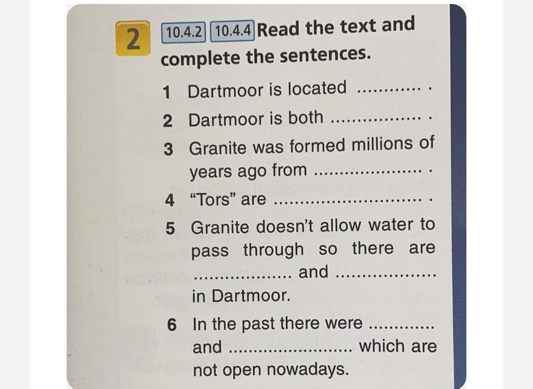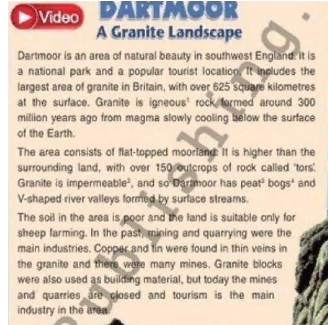 5 Granite doesn't allow water to pass through so there are peat bogs and V-shaped river valleys in Dartmoor.