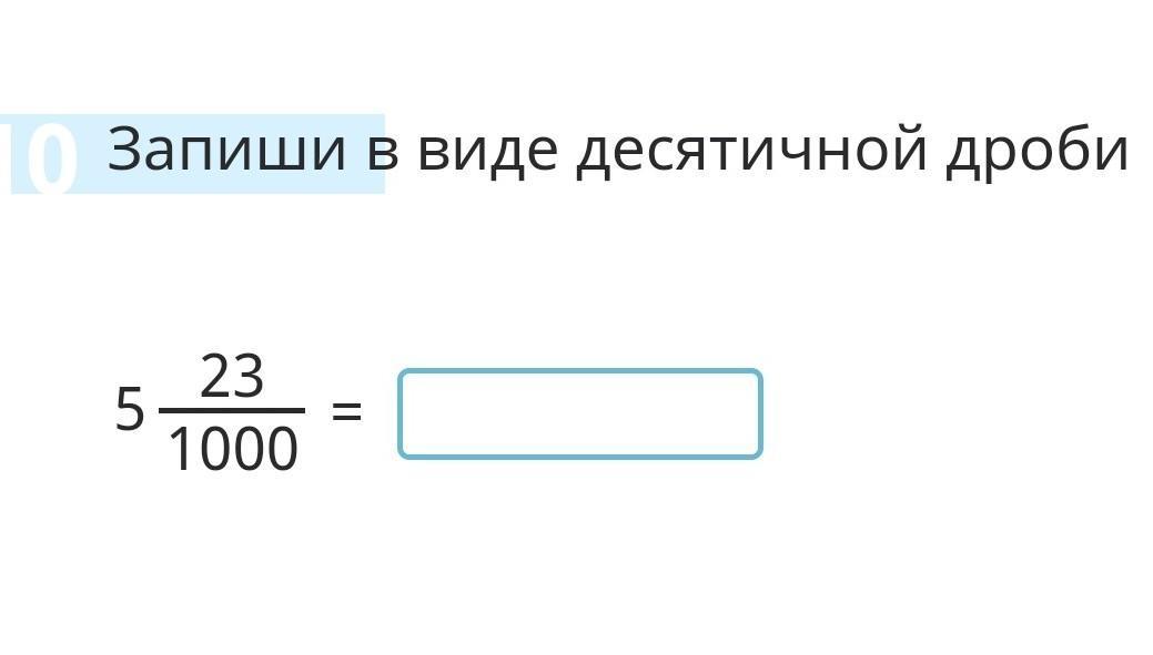 5 23/1000 = 5, 023 ( пять целых двадцать три тысячные)