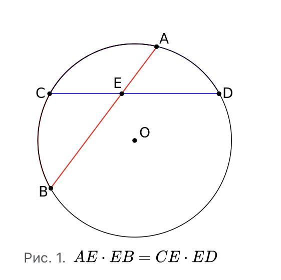 1) При пересечении двух хорд AB и CD в точке E получаются отрезки, произведение длин которых у одной хорды равно соответствующему произведению у другой, тогда
