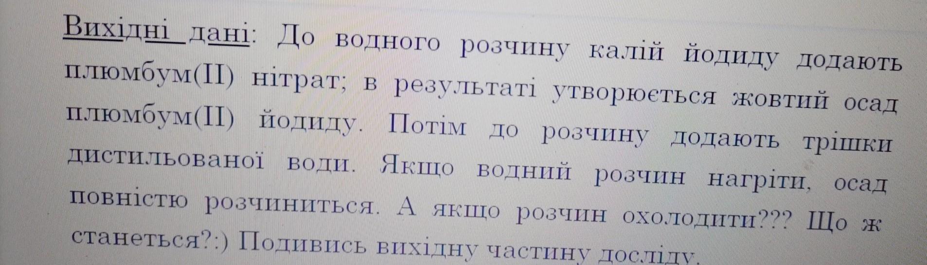 ЯКЩО РОЗЧИН ОХОЛОДИТИ, ТОВИПАДАЮТЬВ ОСАД ЖОВТІ КРИСТАЛИ ПЛЮМБУМ ЙОДИДУ