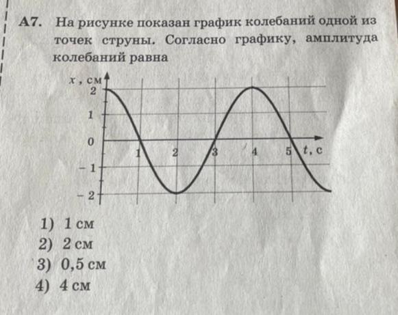 это видно по рисунку, 2см сверху и 2см снизу, значит максимальная амплитуда 4 см