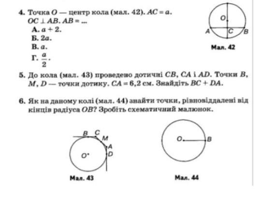 6)рівновідалені точки на колі від В і О є точки перетину кола й хорди, яка перпендикулярна до ВО та проходить через середину цього радіуса