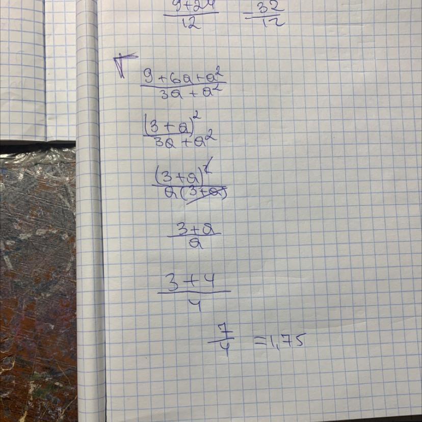 по формуле сокращенного умножения мы обратно раскладываем 9+6а+а^2 в (3+а)^2