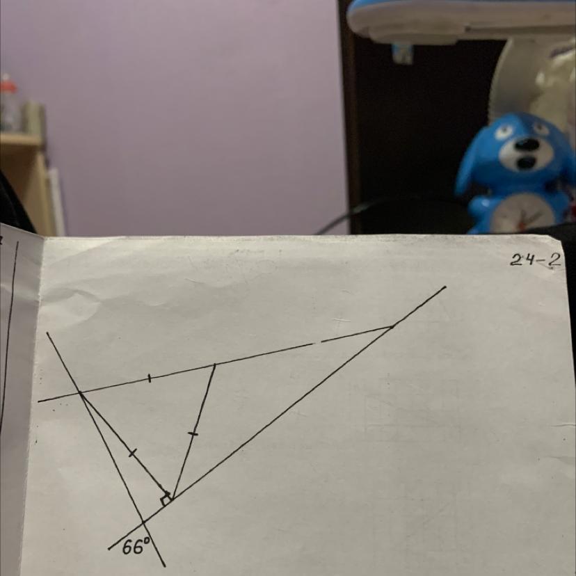 третий угол маленького треугольника равен 180*- (90*+66*) = 24*