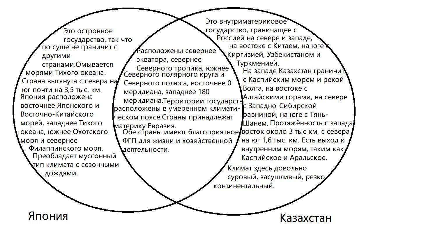 Сравните ФГП Казахстана и Японии при помощи диаграммы Венна- (отличия и что объединяет)