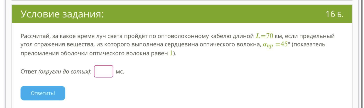 t = 70·10³·1,41 / (3·10⁸ ) ≈ 330·10⁻⁶ c или t = 330 мкс