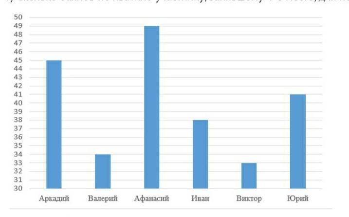 г) 4-е место занял Иван, он набрал 38 баллов, для победы ему нужно было набрать на 1 балл больше, чем Афанасий, то есть 50 баллов. Ему не хватило 12 баллов (50-38=12)