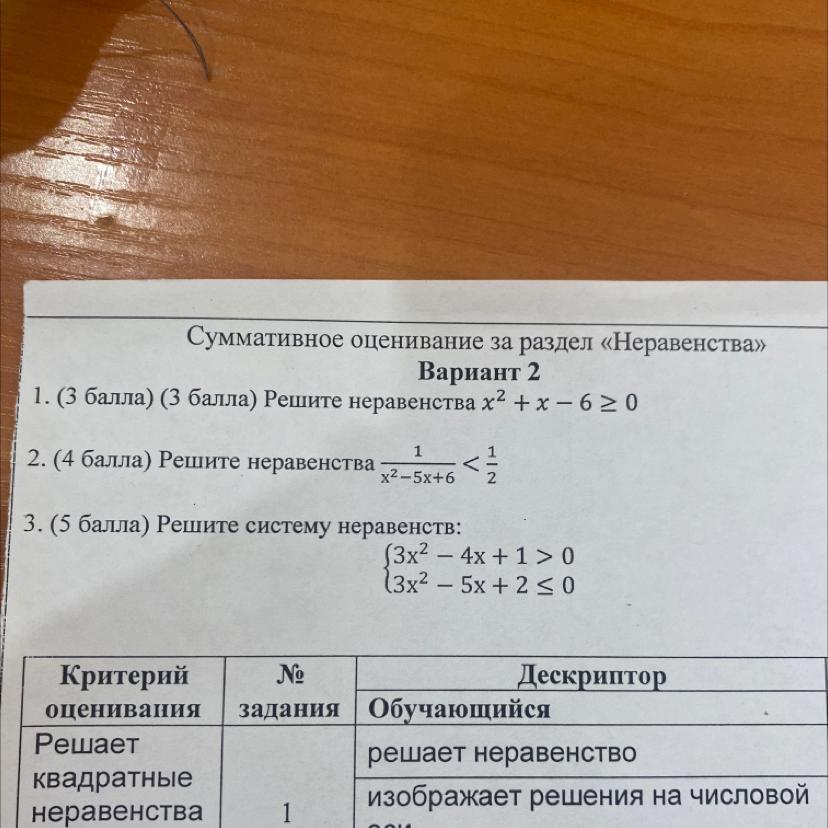 1. (3 балла) (3 балла) Решите неравенства x2+x-6>0
