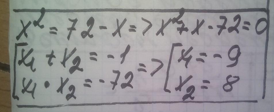 x²=72-x