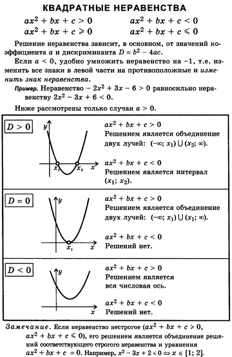 Если в неравенства знак <, то решение у параболы, смотрящей вверх, между точками.