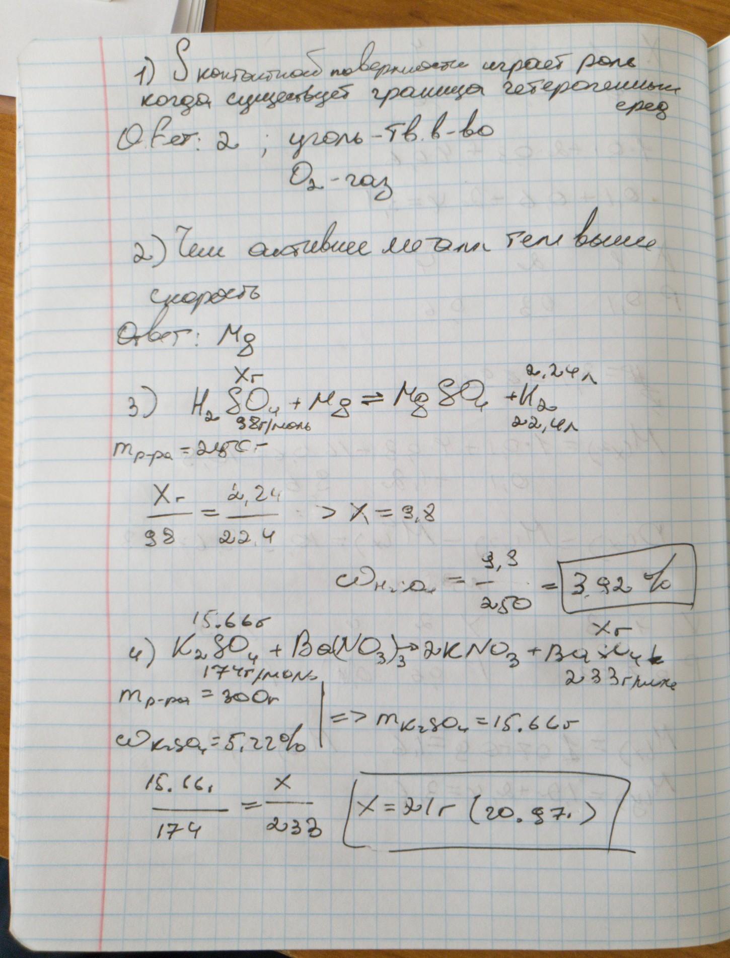 3. в результате действия на 250 г раствора сульфатной кислоты достаточного количества магния образовался газ объемом 2,24 л (н.у.). вычислите массовую часть сульфатной кислоты в исходном растворе. выберите один ответ: 1) 5,43% 2) 2,67% 3) 4,25% 4) 3,92%