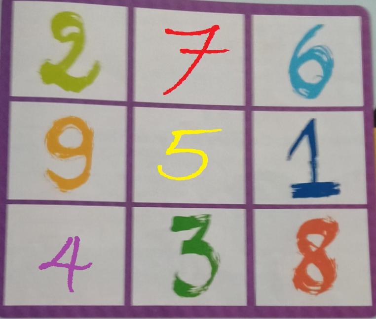 Надо заполнить пустые ячейки цифрами так, чтобы сумма цифр в каждом ряду была равна 15.