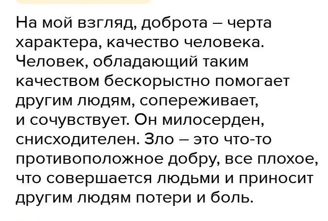 А. Что такое доброта? Что такое зло? Дайте собственные определения понятий, не менее 3 предложений.