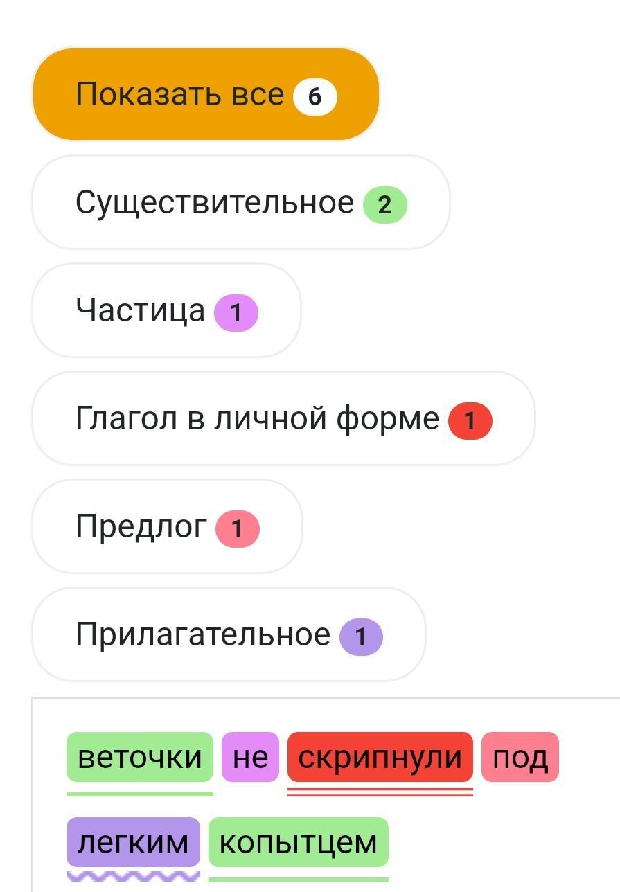 веточки(сущ)не скрипнули(глагол) под легким(прилагательное) копытцем(дополнение).