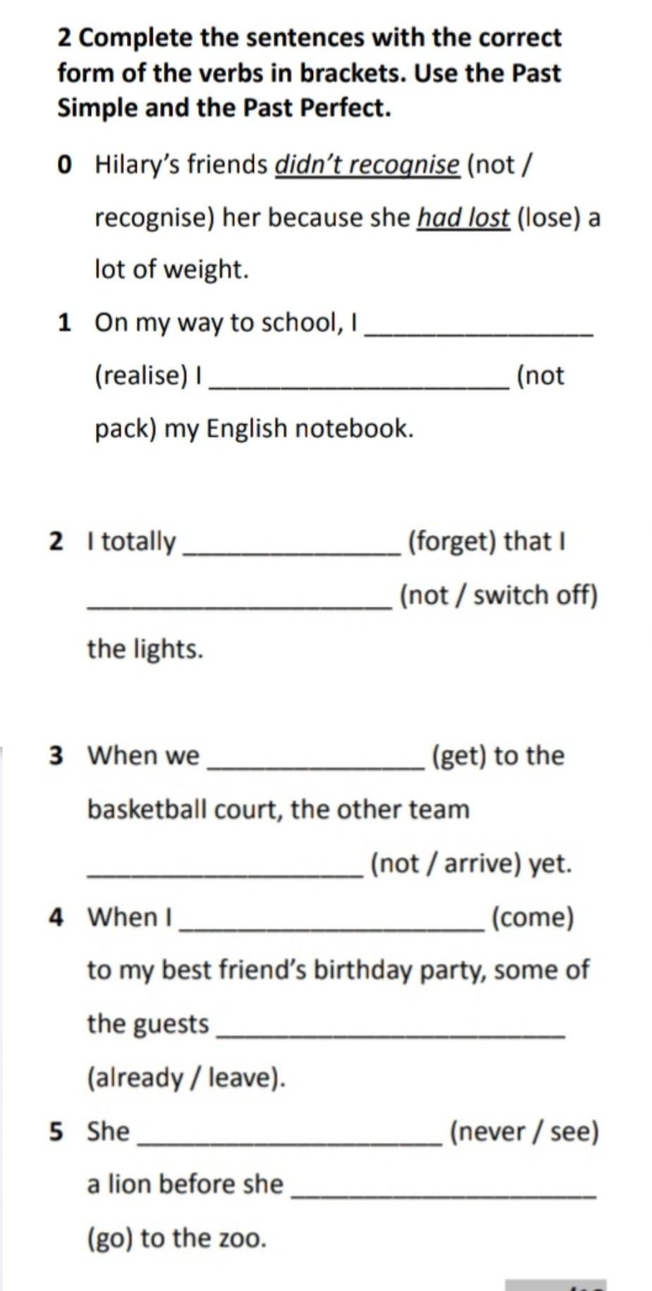 1) realised , hadn’t packed