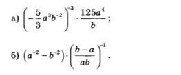 а) (-5а³b⁻²)⁻³*(125a⁴/b)=27*((-5)⁻³*(a³)⁻³*(b⁻²)⁻³*125*a⁴)/(b)=