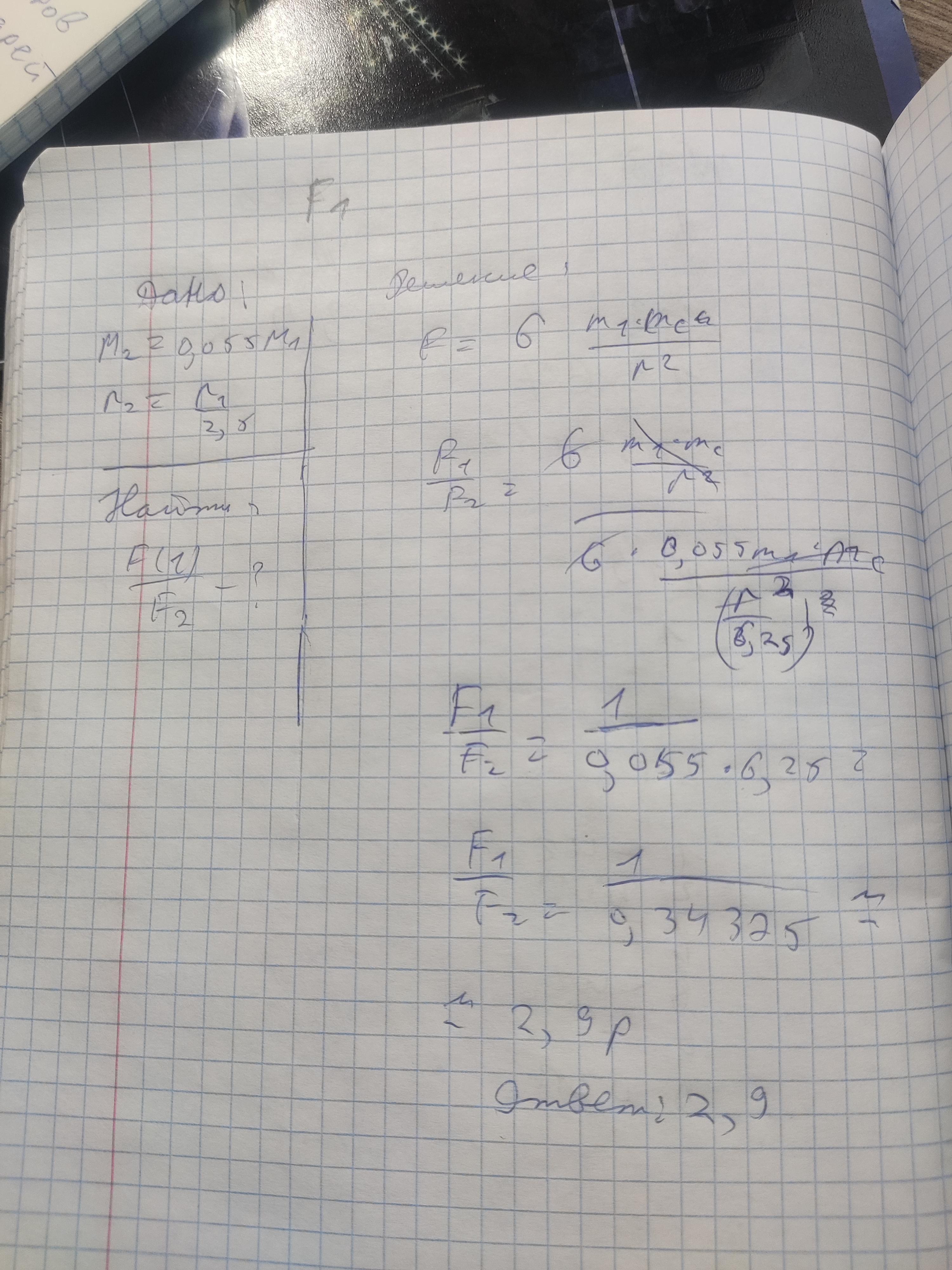 - во сколько раз сила притяжения земли к солнцу больше силы притяжения меркурия к солнцу? Масса меркурия составляет 0.055массы земли, а расположен он в 2.5 раза ближе к солнцу, чем земля