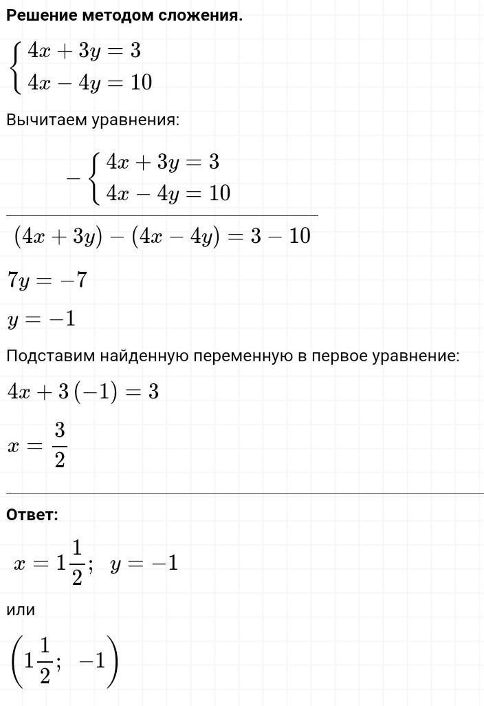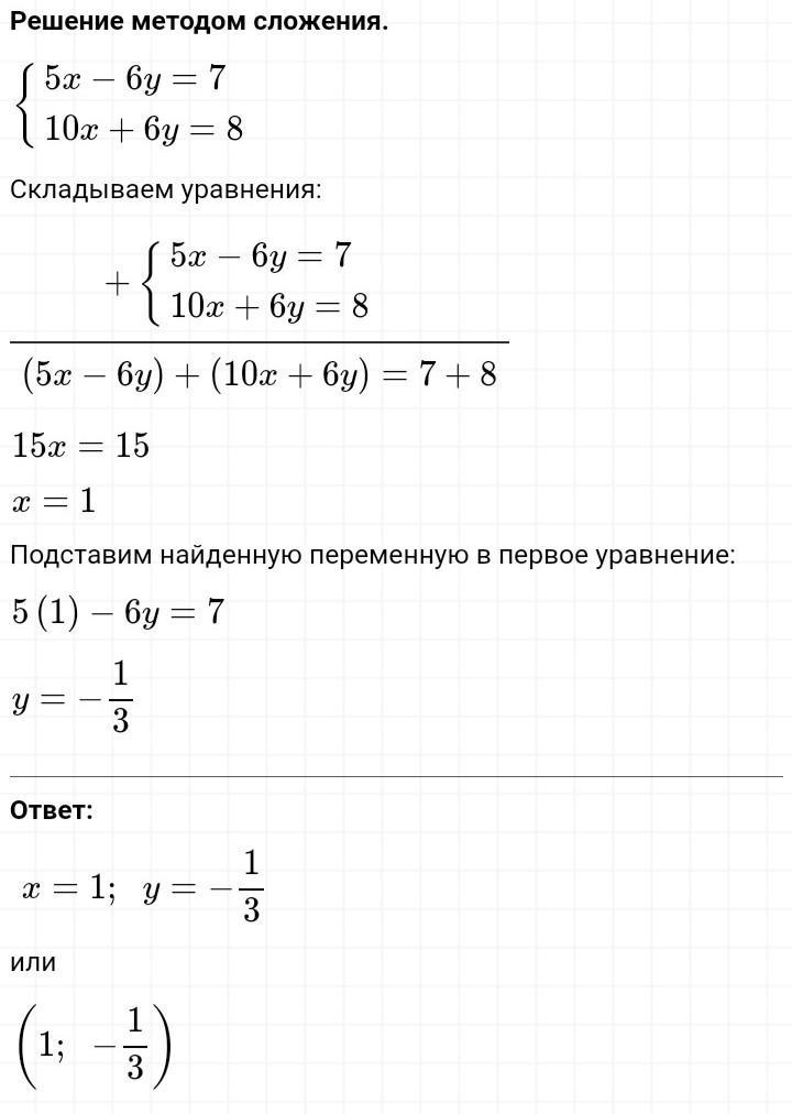 Решите способом сложения системы уравнений: