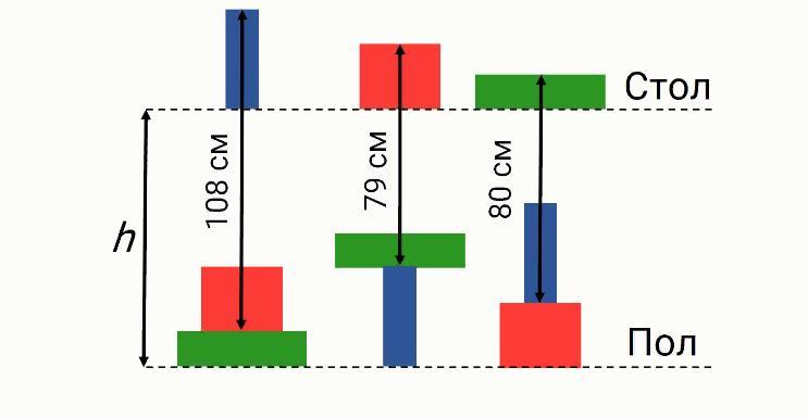 Найдите высоту стола h. Ответ выразите в сантиметрах