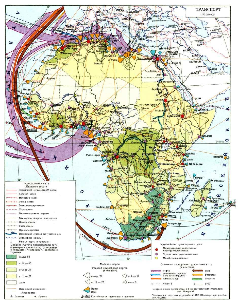 Но большая часть внешних перевозок осуществляется морским транспортом.Поэтому на материке есть крупные международные порты (Касабланка, Александрия, Порт-Саид, Дакар, Кейптаун).