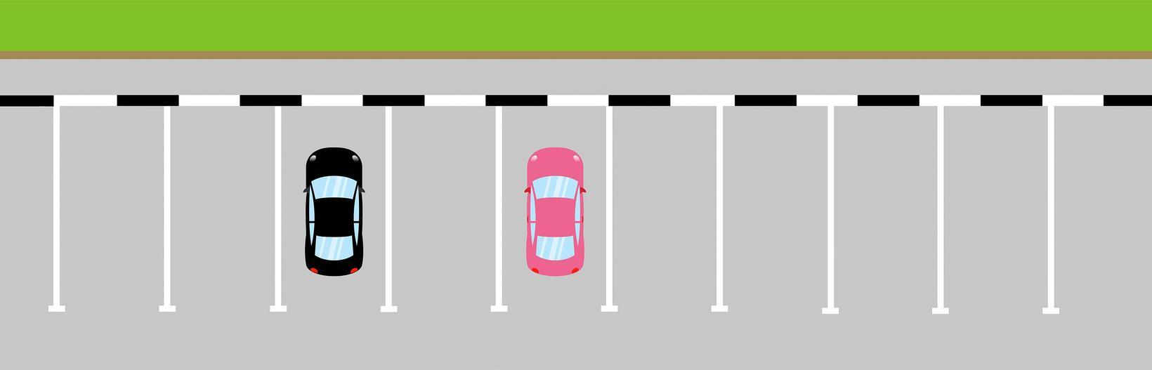 На автостоянке имеется 70 парковочных мест, пронумерованных числами от 1 до 70. Сейчас все парковочные места пустые. На парковку приехали две машины: чёрная и розовая.