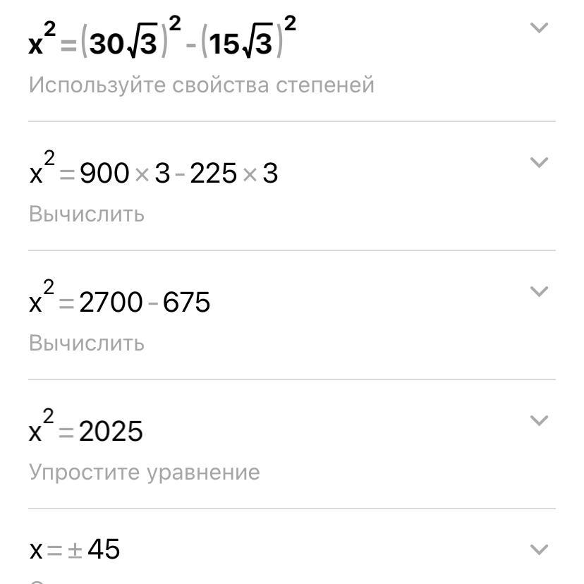 1) катет лежащий напротив угла в 30* равен половине гипотенузы, тогда АО=15 корней из 3 • 2 = 30 корней из 3