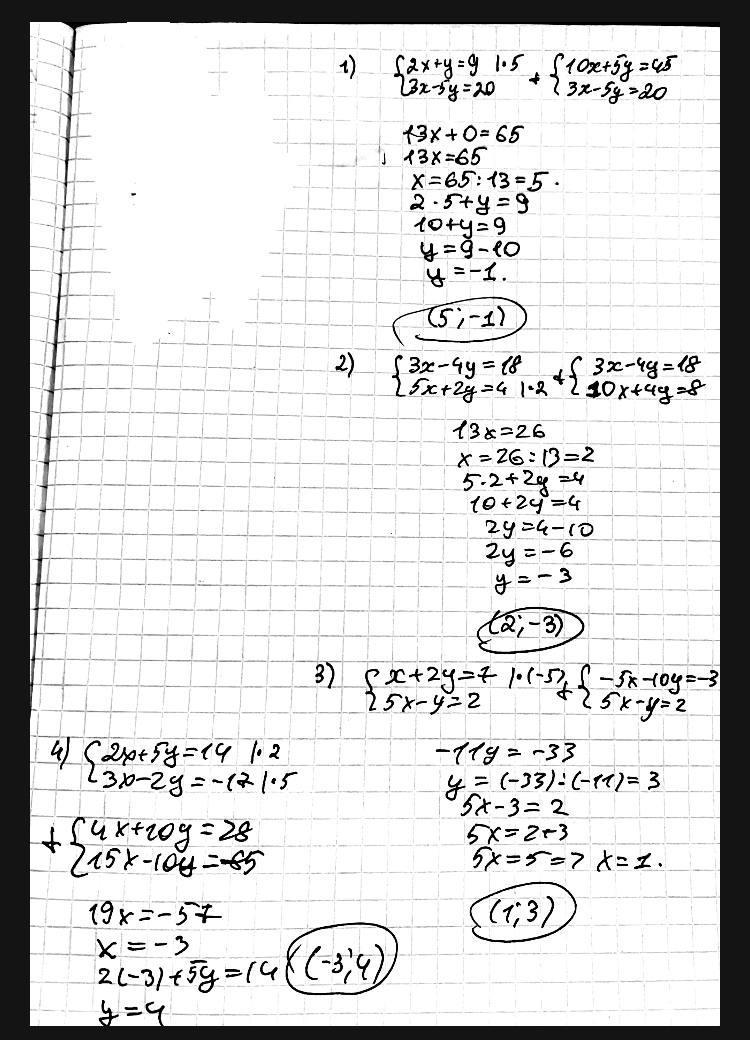 1. Ответ: x=5 ; y=-1