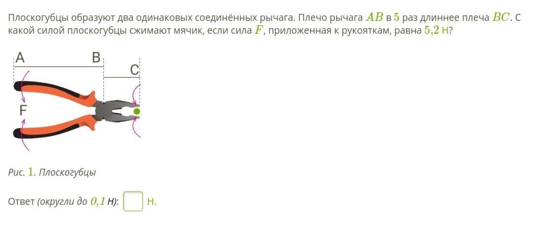 FK1=F2K2, где K1=5K2, F2=F x 7K2/K2 = F x 7=5,2Н•7 = 36,4Н