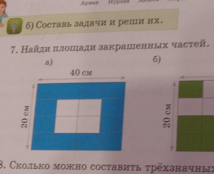 7. Найди площади закрашенных частей. а) 40 см 20 см надо только А ПЖ СРОЧНО