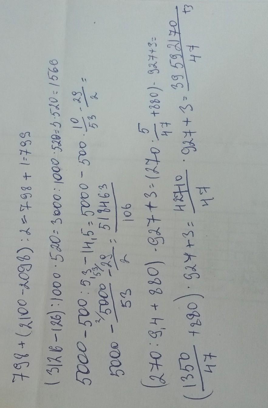 798 + (2 100 - 2098): 2 (3 126 - 126): 1 000 · 520 5 000 - 500 : 5.3 – 14.5 (270: 9.4 +880) · 927 + 3