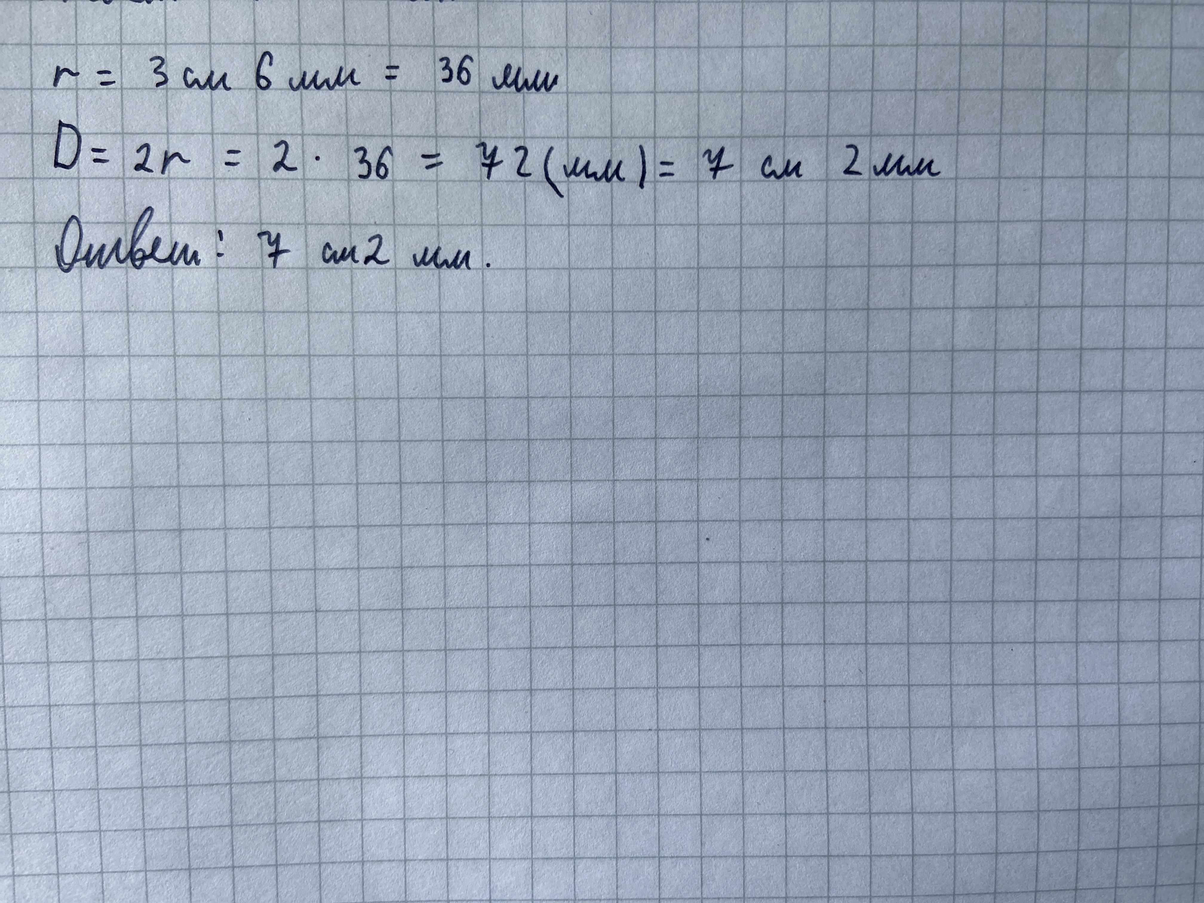 D = 2r = 2 * 36 = 72 (мм.) - 7см. 2мм.