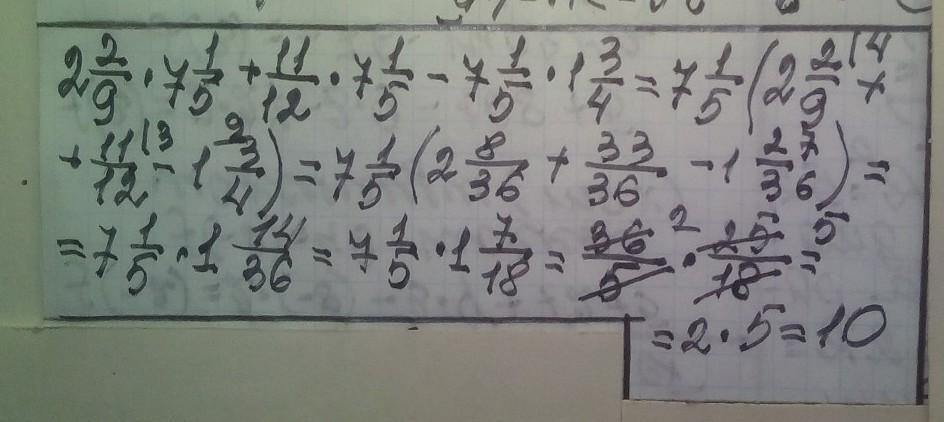 7. 1/5 * (2. 2/9 + 11/12 - 1. 3/4) =