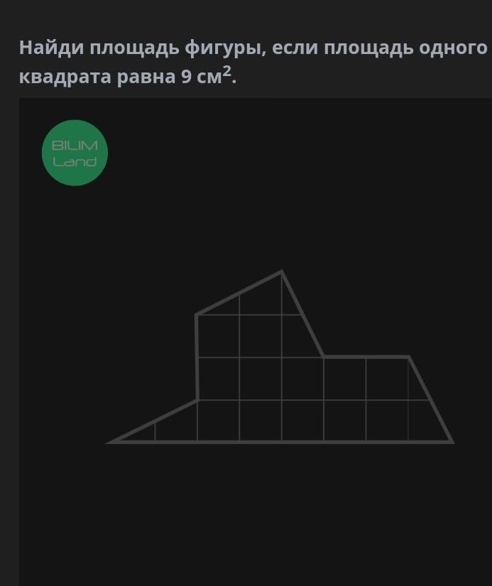 Найди площадь фигуры, если площадь одного квадрата равна 9 см2. BILIM Land