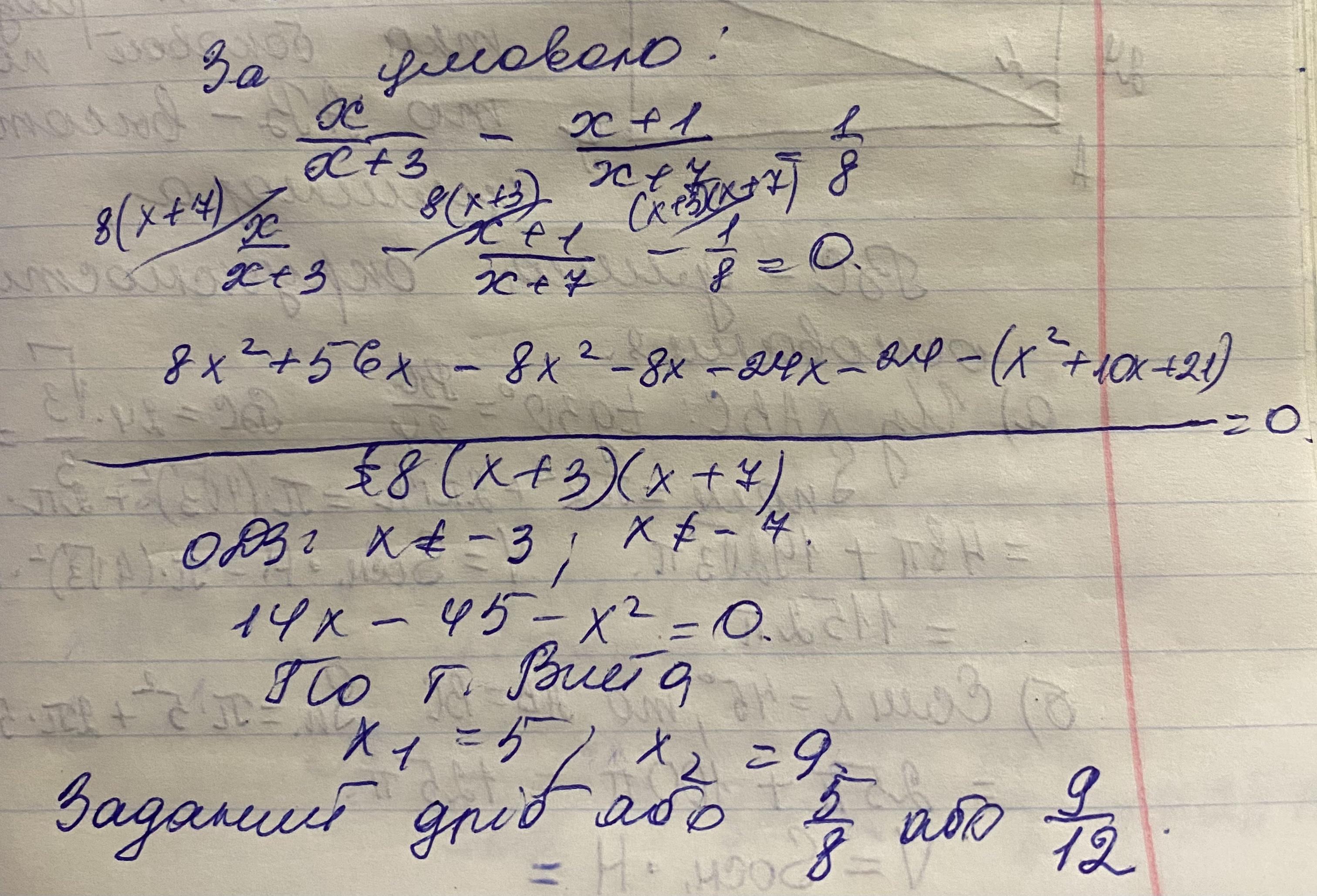 знаменник дробу на 3 більший за чисельник якщо чисельник збільшити на 1 а знаменник на 4 то одержаний дріб який на 1/8 більший заданий знайдіть даний дріб пжпжпжп 50 балов