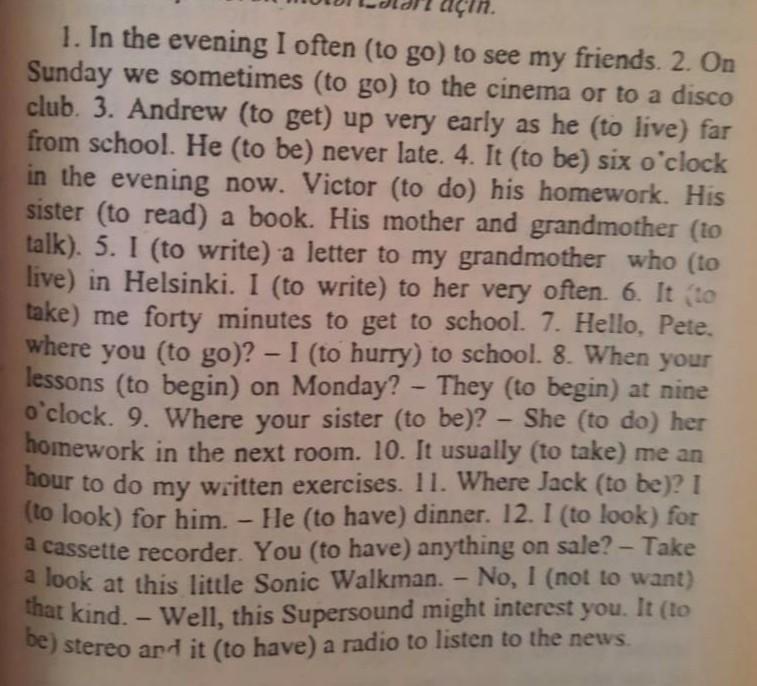 go; go; gets; lives; is; is; is doing; is reading; are talking; am writing; lives; write; takes; are; going; i am hurrying; do; begin; begin; is; is doing; takes; am looking; is having; am looking; do; have; don't want; is; is; has