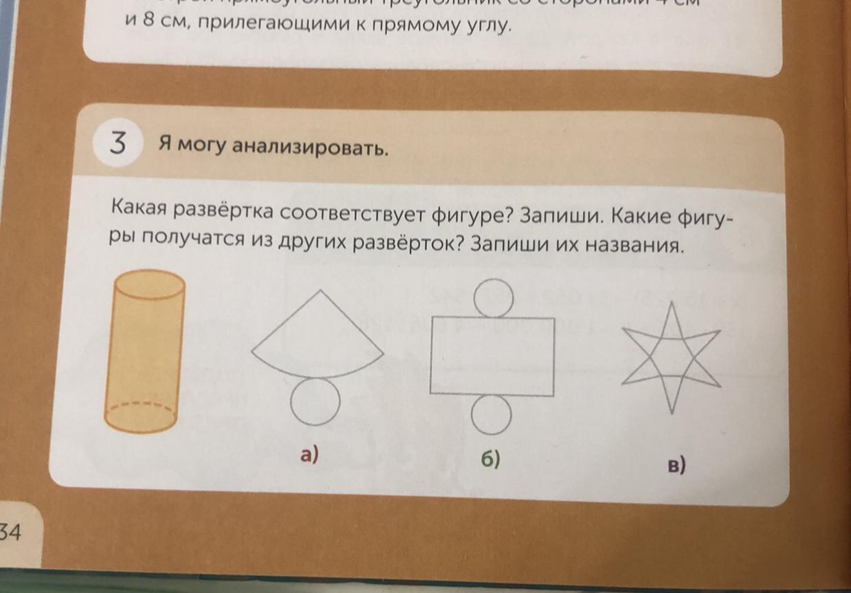 Какая развертка соответствует фигуре? Запиши. Какие фигуры получаются из других разведок? Запиши их названия.