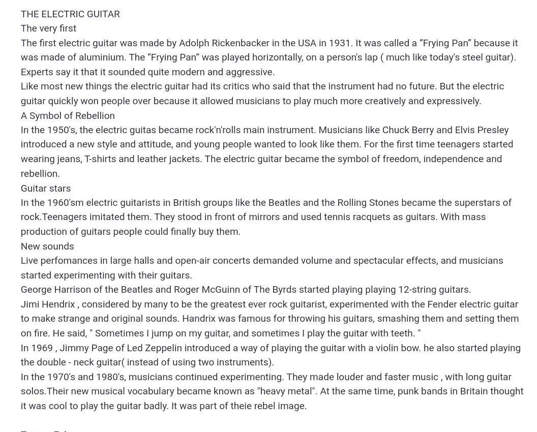 1. The electric guitar sounded unusual for that time, because in the 50s it sounded aggressive and loud. There were critics who said that the instrument had no future.