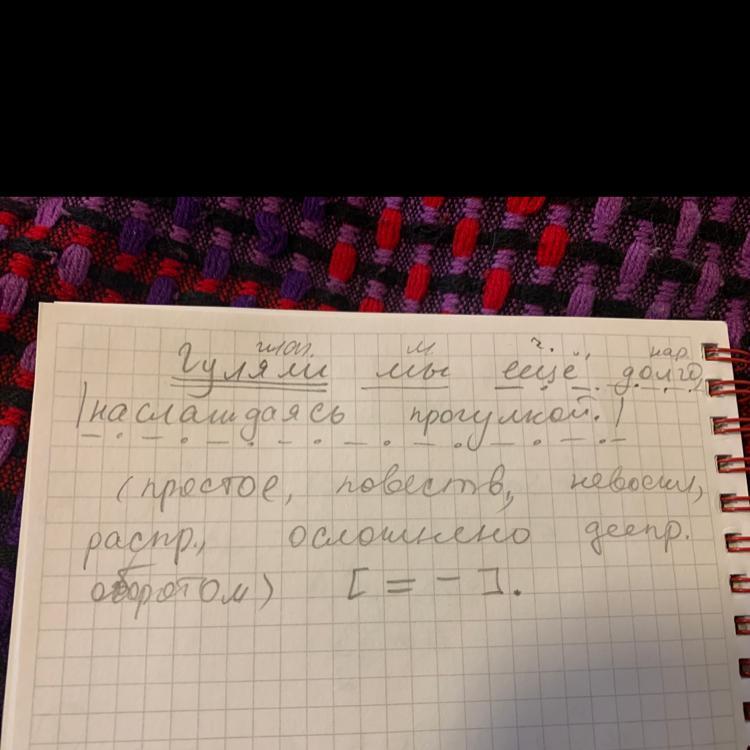 предложение "гуляли мы еще долго, наслаждаясь прогулкой" под цифрой 4 (подчеркнуть как члены предложение, указать часть речи, написать хар-ку и схему предложения)