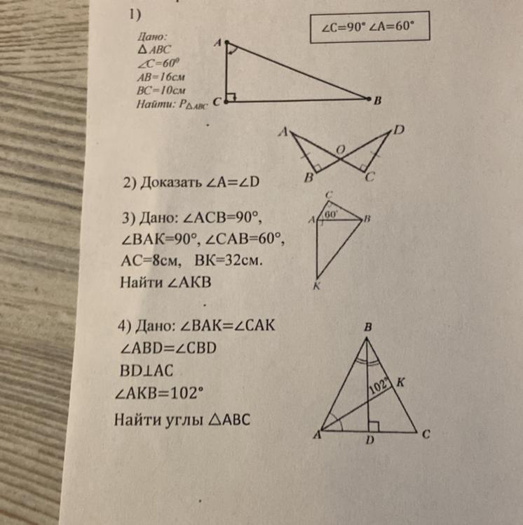 там в 1 угол с 90 градусов, не 60!!!!! прошу, нужно очень и очень срочно!!! решите всё кроме 3!!!
