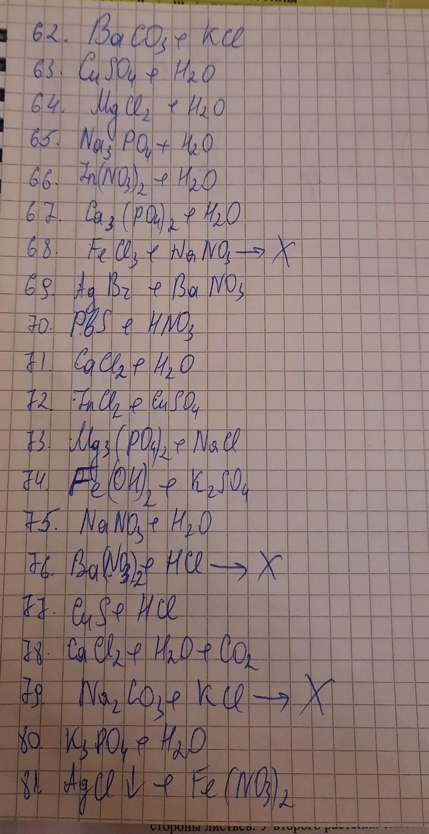 я написала сразу продукты,где я написала Х-значит реакция не протекает